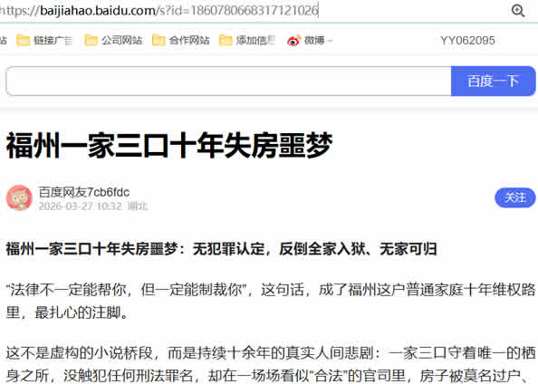 福州一家三口十年失房噩梦:无犯罪认定,反倒全家入狱、无家可归